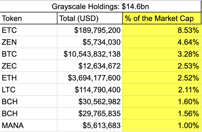 Clearly, Silbert and the Winkelvii are in a stand-off over this issue. If there is no resolution, Gemini will likely have to file for bankruptcy. If DCG does opt to sell a portion of Grayscale's balance sheet in order to cover Genesis creditors, you can see the tokens that will be most affected in the picture above, which has been taken from this thread. Many have stated that this action would be illegal because the two entities are separate, which is really the crux of the issue.