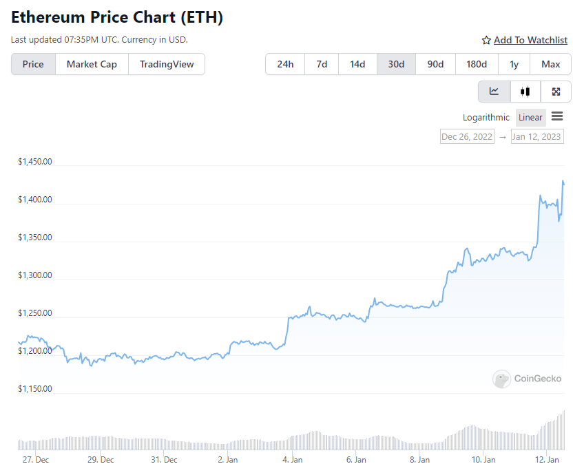 Over the past 7 days, BTC is now up more than 11% while ETH is up 13%. Crypto has shaken off about 50% of the market effects of the FTX implosion. Even more impressive, this rally has come with significantly higher volumes, which is what one would want to see in order gain conviction that we are now entering a bull market. Twenty four hour volumes for BTC stand at nearly $47 billion, approximately 3 - 4x higher than the daily volumes we have experienced over the past couple months. ETH twenty hour volumes stand at approximately $14 billion, which is around 2 - 3x higher than the daily volumes for the past month.
